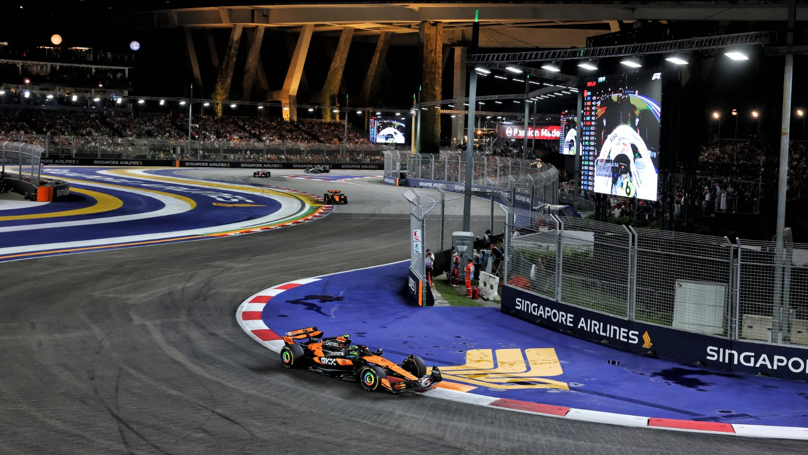 Mercedes’ George Russell dominated proceedings as he converted pole position to win the 2025 Formula 1 Singapore Grand Prix.